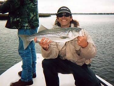 05/17/2010 Today we slipped out late with very fishy conditions,cloudy skies, calm winds and good moving water. We got into bass early on or trip with hooking up with 2 nice Bass with in our first dozen casts. A few casts and a couple of followers later we had another good Bass @ 29"to the boat. Things cooled off as the winds picked up a bit so we made a short run to in hopes of a few more shots before the winds went SW. On our approach we could see Bass moving in the shallows, we quietly poled in and 1st cast in we had our 4th Bass of the trip a 25" speedster that wasted no time heading for deeper water when hooked. Unfortunately when we hooked him he sent the other Bass fleeing from the flat which often occurs when in the skinniest of skinny water. With the tide putting off the bite we hunted down a few Bluefish in the 5 .lb range to close the trip. For the day we had 4 Bass 5 Blues and no other boats. Water temps still at 56. |