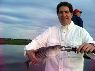 06/09/2010 I love these types of mornings when a plan comes together. Hitting the weather window is a wonderful thing, with 53 degrees air temps, the water dropping back down to 60 and a low pressure system getting ready to pass through, we had calm winds and smooth water, when it was predicted to blow 20-30 knts. We stayed in front of Bass nearly the entire trip today, spending much of the trip sight fishing Bass rolling on grass shrimp. The best Bass of the trip today came on top water when I spotted the pulsing water of this Bass layed up in a small pocket in a larger basin and a perfect cast brought the lure across his nose. In no time he turned and grabbed it and a few minutes later we had this nice 23" Bass boat side. Our first stop of the day gave us 4 Bass and raised a 1/2 dozen more, as well as a decent amount of Blues in the 4 lb class. We decided to make a run, and a short skiff ride later we were sitting once again on a gin clear flat looking for Bass stemming the tide, waiting to ambush bait as it flows off the flat. Our action remained strong but our luck didn't follow on the fly or spinning tackle. My client put a perfect cast with the fly up current and it swung directly in front of a layed up beast of a Bass, followed by a THUMP, game on, as the Bass sped off to the shallows before reverting coarse and coming mock speed directly at us. Reeling as fast as possible a second later he had broken off as he caught a mussel shell in the shallows. A few casts later as I was tying on a new fly my light tackle client hooks up and nearly the same battle occurred as the Bass ran to deeper waters and broke us off in the shells. Once the action faded and the winds started kicking up we did some hit and runs for the remaining 45 minutes of our trip, which resulted a few strikes but no more boated. |